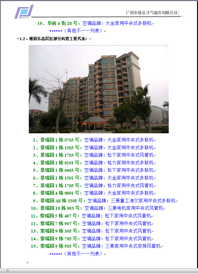 雅居乐高层区部分风管工程代表